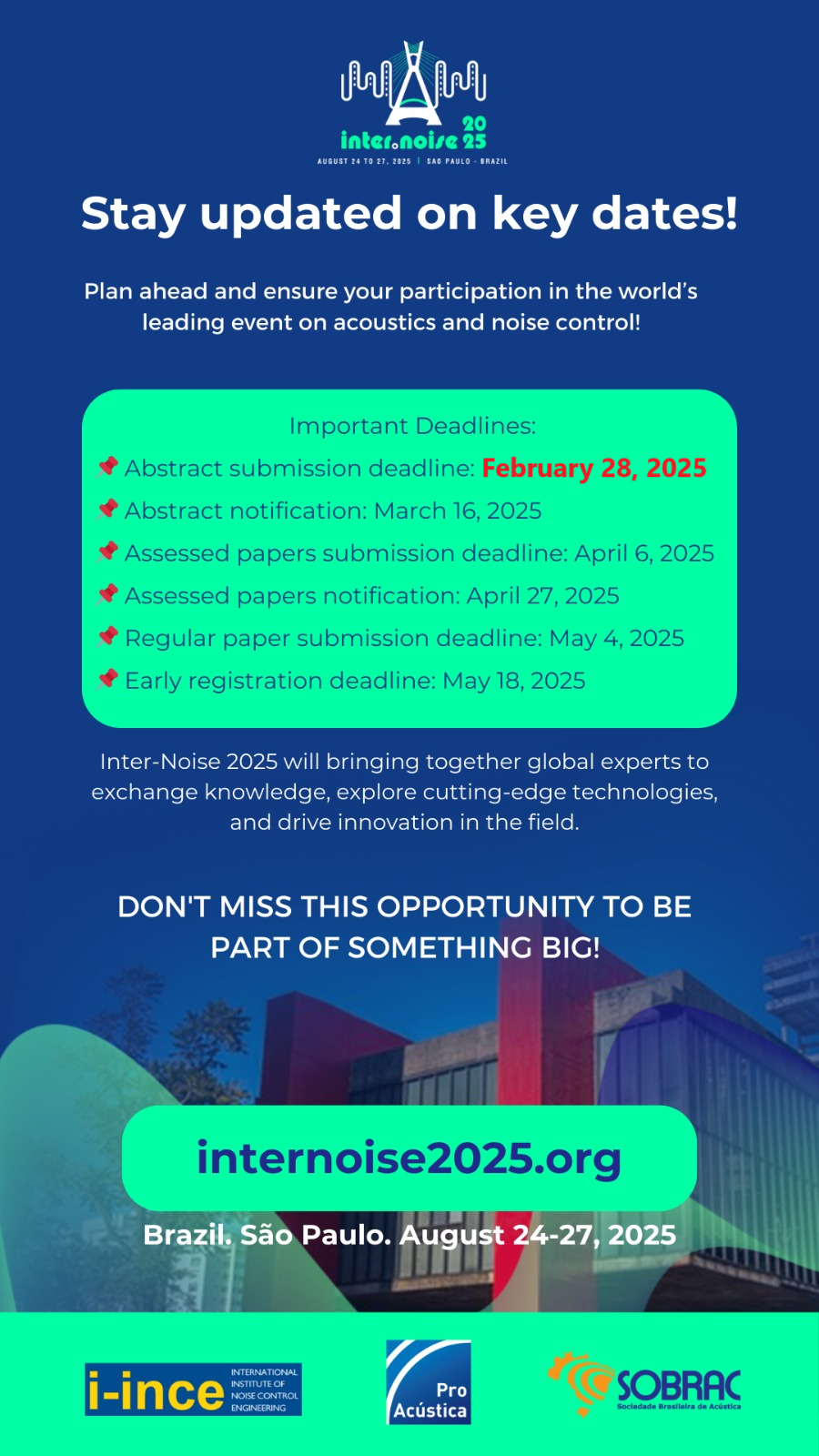 Welcome to Inter-Noise 2025 August 24 to 27, 2025 | Sao Paulo – Brazil Abstract Submission Welcome to Inter-Nois...